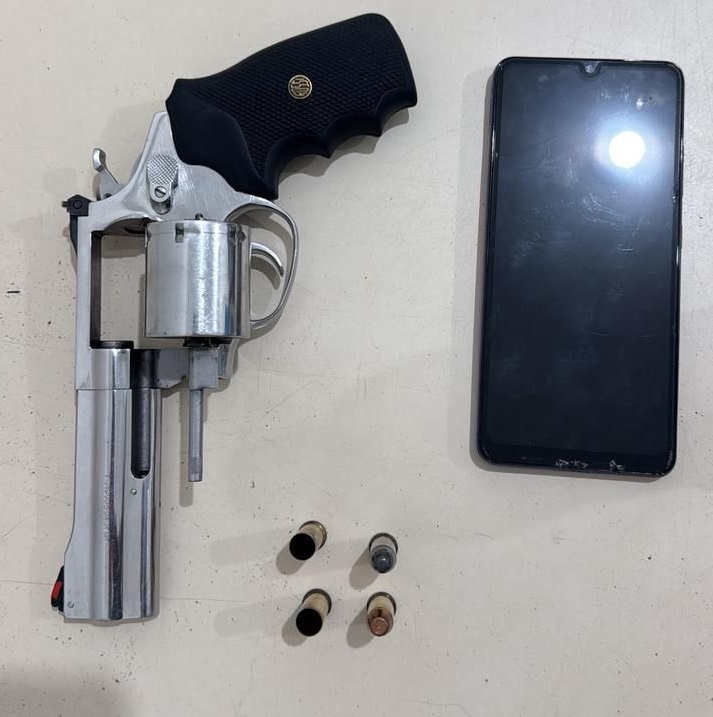 Na ocorrência, os militares apreenderam um revólver calibre .357 inox, da marca Rossi, com duas munições deflagradas, uma picotada e outra intacta, além de um celular. O caso foi encaminhado à Delegacia de Plantão da Zona Norte para os procedimentos cabíveis.
